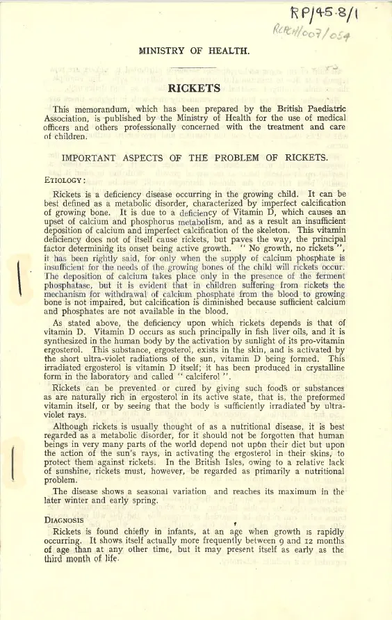 During wartime rationing, it was important that everyone got the right nutrition to stay healthy and grow. Children got more eggs and milk and were encouraged to eat more fruit, vegetables and fish. But health issues caused by poor nutrition, such as rickets, still increased. During the war, the BPA carried out research into the quality of milk as well as the rise in rickets, and circulated diagnosis and treatment guidance.