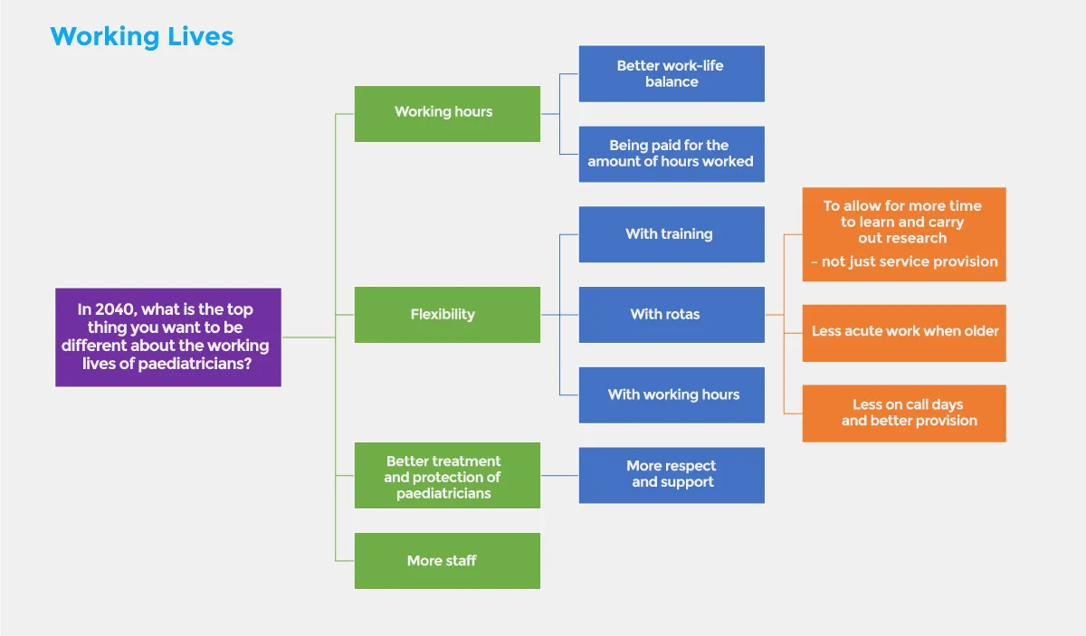 We invited our UK members to take part in a thought experiment and join us in our journey to the future. We are very grateful that over 300 of you from across the UK took the time to share your views on what paediatrics and our working lives should look like in 20 years.